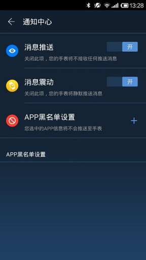 - 通知中心:通过Ticwear手机助手,可以让手表管理您的电话、短信、邮件及手机APP的消息推送,并可设置黑名单以便屏蔽垃圾消息;