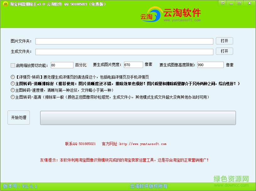 软件操作非常方便,不管详情页还是主图转码,都是一键搞定,批量切割,批量调整像素,批量转码,卖家省时省力,提高卖家的工作效率。另外淘宝同款排除王是目前上市场成功率最高的排除同款方法方案,是屏蔽同款和抢新品标签的首选工具。