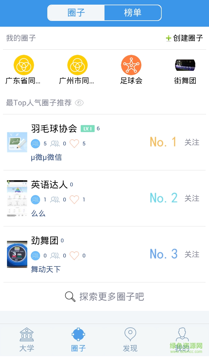 3、增加圈子排行;