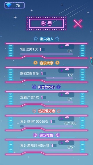可以在众多音乐中选择你要听的,每种音乐下都有一个关卡。