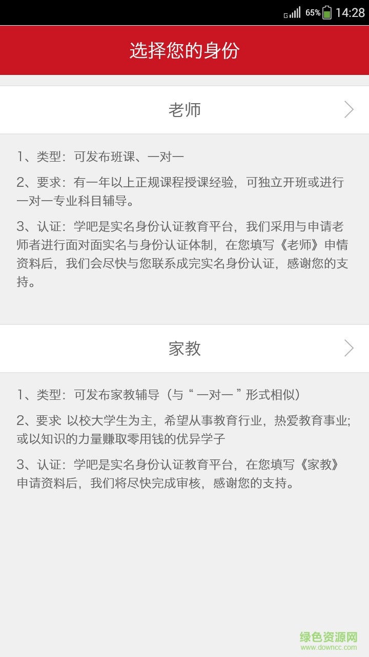您可以根据自身的情况选择您的教员类型:教师、家教