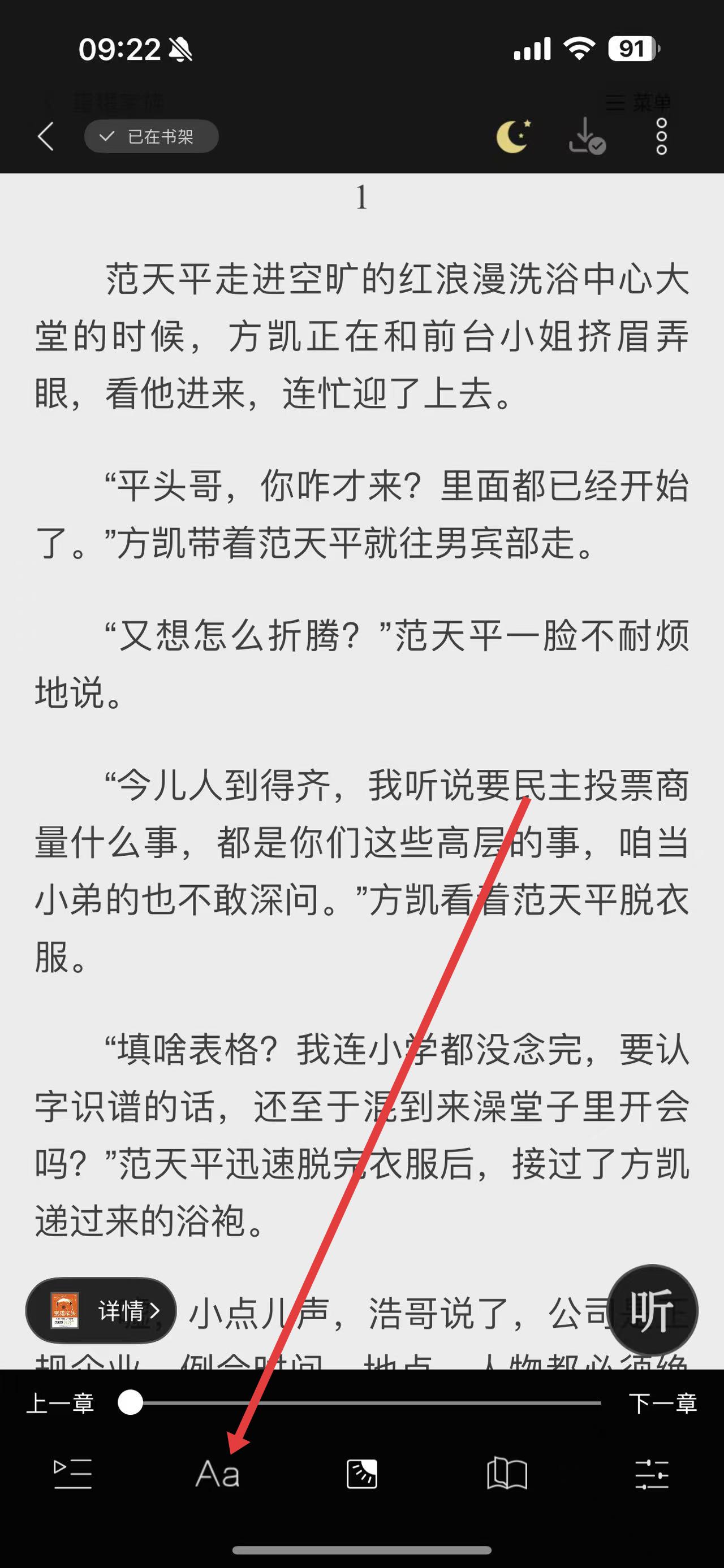 3、进入书籍阅读页面后,点击屏幕下方中间位置的Aa图标。