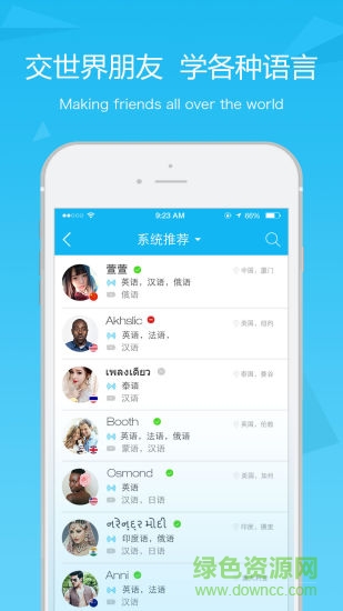 2.全世界语言学习小伙伴。这里的用户来自全球任何地方,有各种语言学习小伙伴,你可以跟老外地道地说外语。