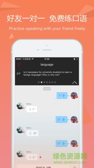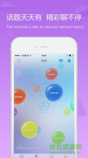 daily10 app是一款非常实用的口语学习手机软件,这里汇集了全球学语言的小伙伴,各种语言和话题应有尽有,你可以轻松的和老外对话,免费练口语,轻松提高语言技能,喜爱的朋友赶快到绿色资源网下载体验吧!