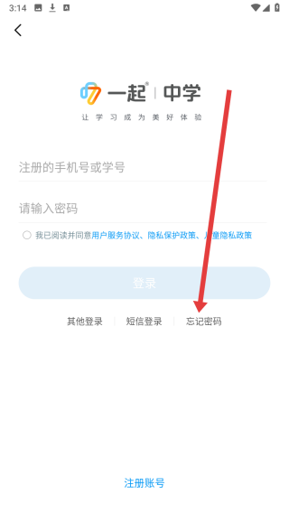 2、在进入到登录页面后,若忘记了密码,可以点击忘记密码按钮解决。