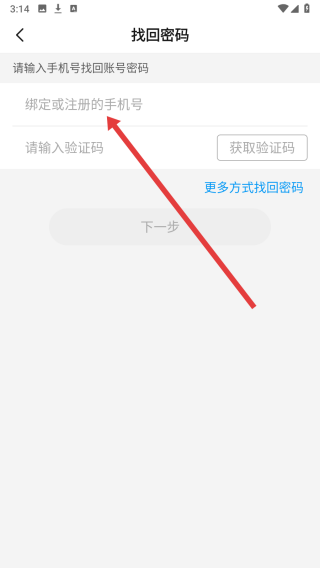 3、在跳转到找回密码页面中,在输入框中输入手机号以便获取验证码完成找回操作。