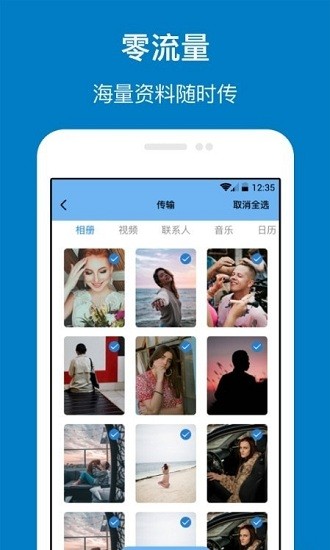 所有资料备份,一键换机,满足数据备份,相册照片,壁纸,铃声,通讯录,等所有换机备份需求