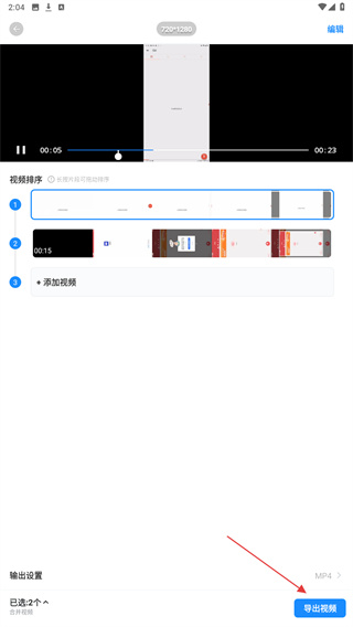 3、确认合并顺序、格式等设置无误后,点击页面右下角导出视频按钮。
