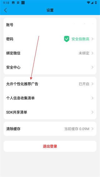 3、进入设置页面后,找到允许个性化推荐广告选项并点击进入。