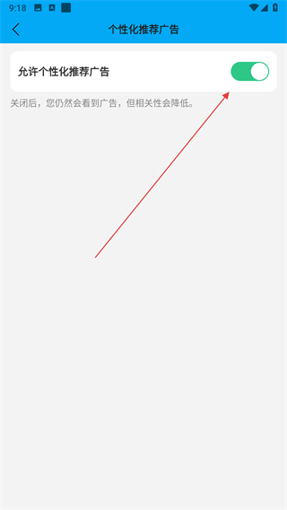 4、在个性化推荐广告页面中,点击右侧的开关按钮,即可关闭。