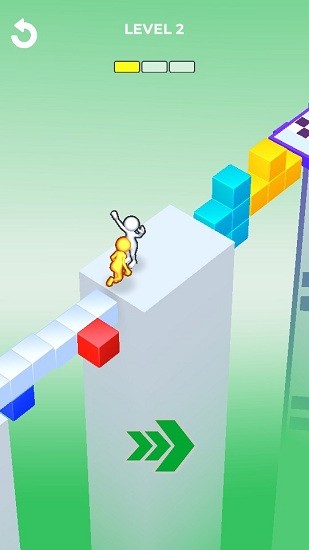 1、这里的桥并没有阻拦的凸起,按住绿色的按钮小人将向前行走,可以顺利通过进入到下一个挑战。