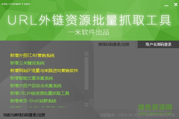 一米url外链抓取软件是一款站分分析网站外链必备工具,通过该软件可以帮助用户分析某个网站的外链,从搜索引擎提取某类网站的URL等等,功能非常的多哟,需要的朋友赶紧来绿色资源网下载吧