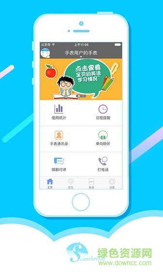 智慧伞-学生智能手表app是一款和智慧伞-学生智能手表硬件配套在一起使用的APP.它不仅有双向通话、单向聆听、实时定位、微聊对讲、日程提醒、健康记步等功能,还有上课时间设定、英语在线教育,让家长在确保孩子安全的情况下,更能实时了解孩子学习状况及培养孩子生活学习习惯。其搭配的学生智能手表还具备音乐播放功能,让孩子学习娱乐两不误,真正快乐成长每一天,欢迎来绿色资源网下载!