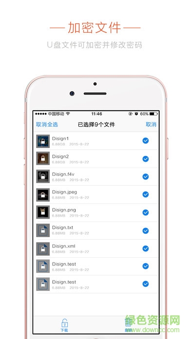 乐听U盘是一款手机上的优盘应用,可以快速保存手机里的重要文件、照片、视频等,非常好用,需要的朋友快来绿色资源网下载吧!