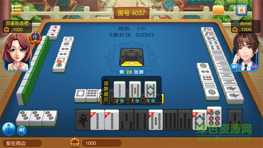 由三个玩家进行游戏,只能碰或者杠,不能吃;每局牌有一个玩家胡牌,则重新开局,进行下一局游戏,如无人胡牌,则该局荒庄,荒庄不荒杠(杠牌的分数要结算)、不下庄。