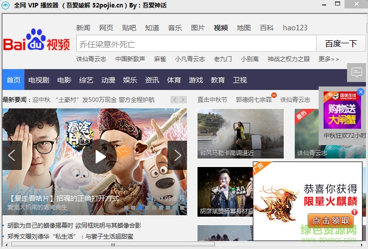 吾爱全网vip播放器是一款功能强大的vip视频播放器工具,支持腾讯视频、爱奇艺、优酷视频等多种播放器vip视频播放权限,完全免费使用无广告,观看画面高清流畅,轻松解决vip视频权限难题。快来绿色资源网下载使用吧!