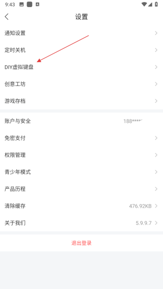 3、在设置界面,点击DIY虚拟键盘进入对应页面。