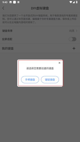 4、点击我的键盘旁的+号,在弹窗中选手柄键盘或键鼠键盘,进入自定义编辑界面即可DIY。
