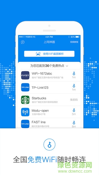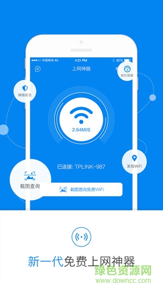 ios版上网神器是一款随身wifi驱动,将用户身边的各种免费wifi通过特殊的扫描上网方式进行连接,同时还能够分享给好友使用,达到了免费连接全国wifi的效果。快来绿色资源网下载吧!