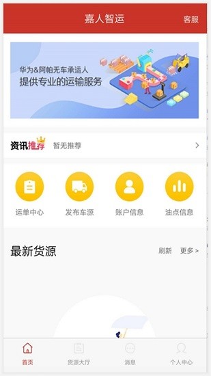 嘉人智运司机app最新版是司机用户拉货的好帮手,司机可以直接在手机上发布自己的车源和常用的路线信息,根据司机的常用路线以及车型智能推送符合条件的货源,返程也有超多货源,避免空载,欢迎有需要的朋友下载体验!