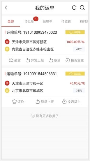 支持手动操作刷新货源列表,查看货主最新发布的运货信息;