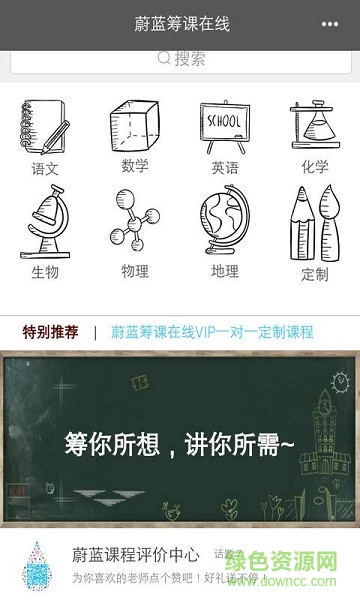 蔚蓝筹课app是一款优质教学录播及直播课程推荐软件,在这里包含从小学到高中所有课程的教学视频以及成人课外定制教学,只要你有需要总会找到自己合适的!快来绿色资源网下载吧!
