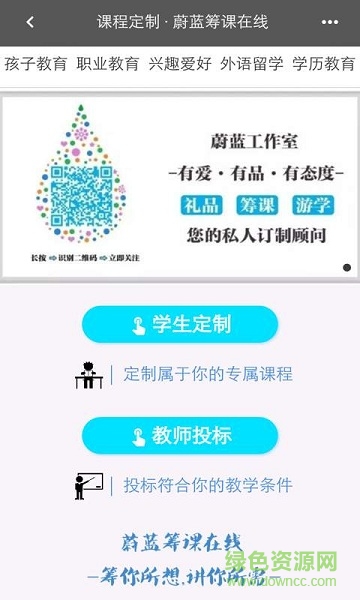 蔚蓝筹课在线,定位于“筹你所想,讲你所需”,无论你是小学生、中学生、大学生、白领、教师或公务员,无论你想学外语、K12阶段课程、职业技能或兴趣课程,海量优质教学资源任意挑,想学习,就加入我们吧~!