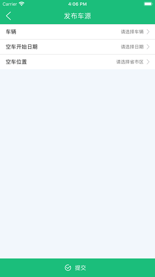 4、提供车源功能,根据实际情况发布空车信息推荐货源。