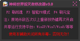 神将世界毁灭者修改器是一款专门为神将世界玩家打造的游戏辅助工具,主要为玩家提供刷战魂、刷元宝等功能,让玩家尽情体验游戏的乐趣,有需要者欢迎下载!