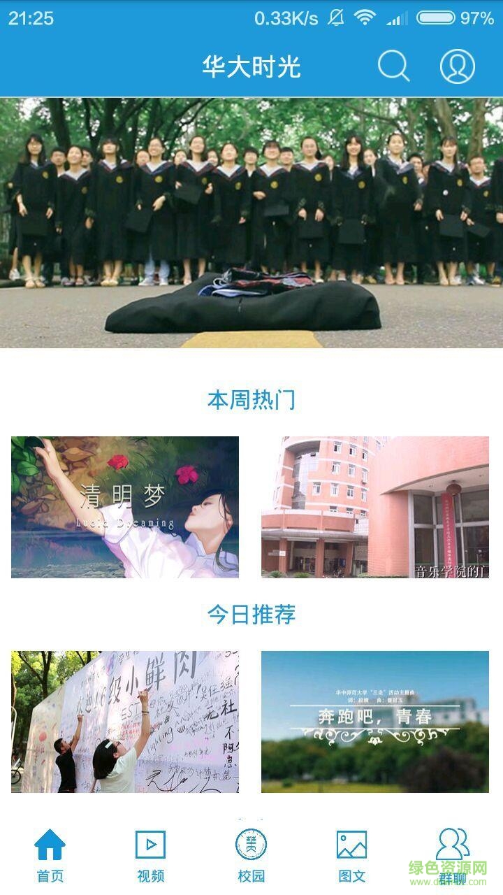 华大时光app是一款专为华中师范大学学子打造的校园专属应用,汇聚了新鲜全面的校园资讯,以及各种校园活动视频,完整记录你的校园时光,有兴趣的童鞋快来绿色资源网下载吧!