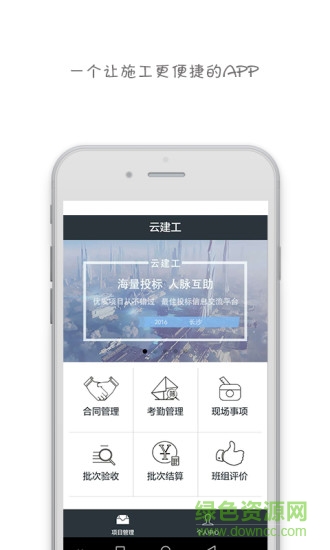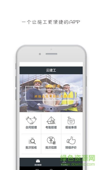 2.项目部APP功能包括:合同管理、考勤管理、现场事项、批次验收、批次结算、班组评价。