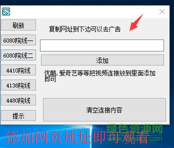 院线同步是一款支持6080院线、4480院线等影片地址的接续工具,让你在线无广告看各种院线大片哦!使用简单方便,绿色无需安装,快来绿色资源网下载吧!