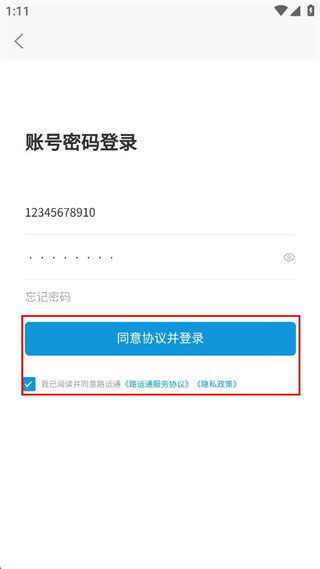 4、勾选我已阅读并同意路运通相关协议的选项,点击同意协议并登录按钮完成登录操作。