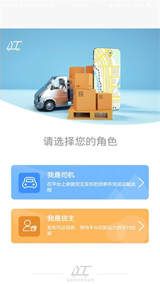 2、在角色选择页面,找到我发货板块下的我是货主选项,点击该选项进入账号密码登录界面。
