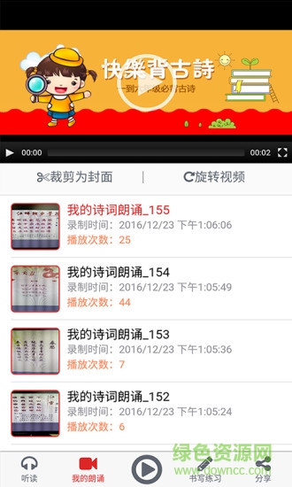4.包含了一键视频录制功能,可以让小学生记录自己背诵古诗的点点滴滴。