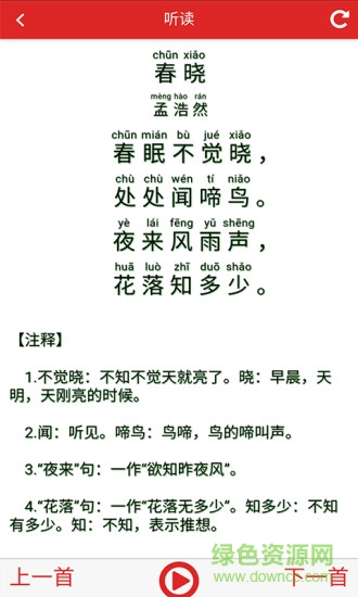 小学诗词朗诵安卓版是一款非常好用的古诗词学习手机软件,主要供小学生使用,汇集了小学阶段的所有古诗词资源,可以学习和做题练习,欢迎大家到绿色资源网下载体验!