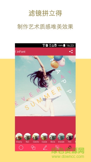 最美文字app是一款摄影摄像应用,最美文字app是现在年轻人热爱的一款软件,一键智能功能,打标签,艺术字,拍下自己喜欢的图片,加上自己想要的效果,轻松制作出影楼拍摄出的效果,让你从此拍摄出有范的味道,快来下载体验吧!绿色资源网等着你的到来。