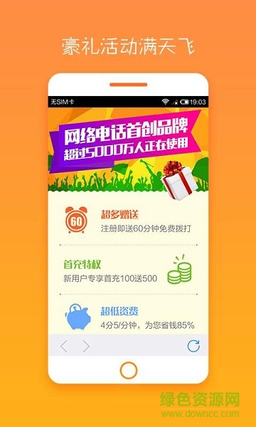 2、注册即送最高60分钟免费通话;