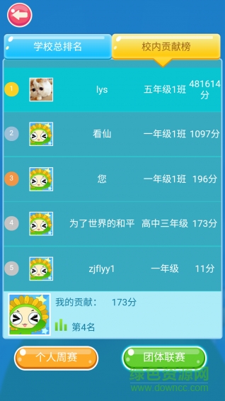 3.排名联赛:全国争霸赛,个人夺上游,学校争首名。