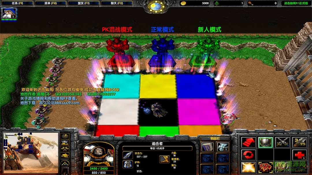 进击脑残9.3正式版是作何呕心沥血修改的魔兽生存地图,附英雄隐藏密码,适合5V5团战,关卡调整,增加PK混战模式,复活方法也更改了,快来绿色资源网看看吧!