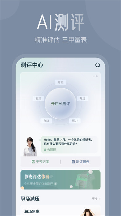 2.AI测评深化:引入最新AI技术,优化心理测评系统,实现更精准、更全面的自我探索体验,帮助用户快速定位内心世界,发现自我潜能。