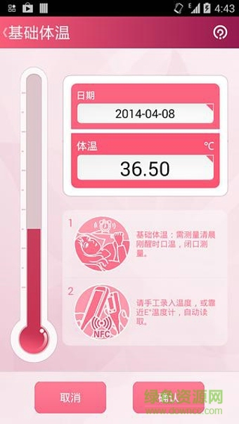 2.【智能预测与提醒】 根据您的基础体温曲线和生理周期,自动预测、提醒下一次排卵日和月经开始日,并提示孕期窗口的易孕率,帮助待孕的准妈妈合理计划受孕时间。