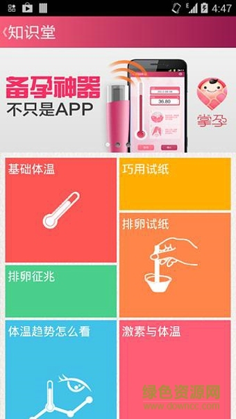 掌孕app是一款专为女性用户打造的一款智能管理app,能动态绘制基础体温曲线并自主管理女性生理周期及易孕期的移动应用。保障女性的身体健康,建议所有的女性朋友都来下载!欢迎前来绿色资源网下载!