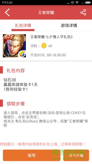 兔巴手游礼包——专注服务95后00后的手游礼包领取中心,一键领礼包、抽Q币、看妹子图、趣段子、小视频!游戏娱乐购物三不误!齐全的王者荣耀等手游礼包,每周会上架多款免费礼包,内含各种英雄体验卡、钻石、经验卡等精彩内容,助你局局大胜,赶紧来下载体验一下吧。