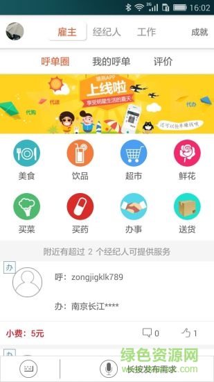 2、通过雏燕APP,在呼单圈里发出自己的任何需求,就会有经纪人帮你完成任务。当然,你也可以自己当经纪人赚取小费。