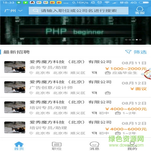 17iJob手机版是一款专注于网上找工作的软件,在这个平台上海量工作任你选。通过这款软件你可以查看最新的招聘信息,让你找工作没负担,不管是兼职还是全职,只要来这里就有适合你的工作。有需要的朋友们就快来绿色资源网下载吧!