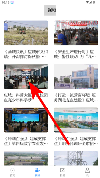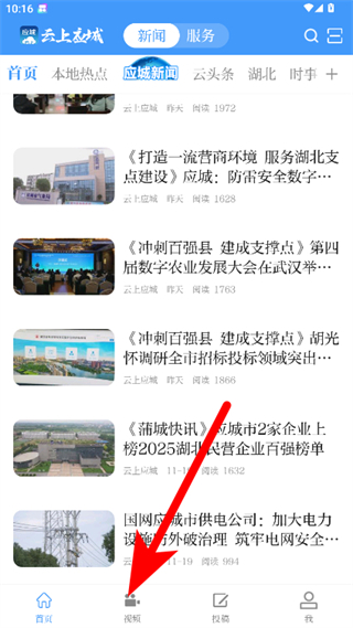 1、在云上应城APP首页,点击底部视频选项,进入视频界面。