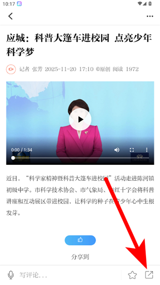 3、在视频详情页面,点击右下角分享按钮,弹出分享选项界面。
