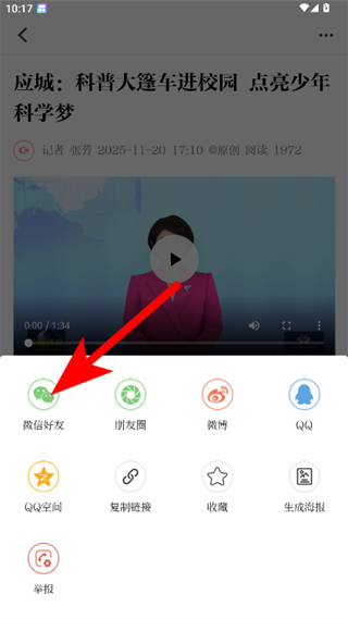 4、在分享选项界面,选择要分享的渠道,如微信好友,即可完成视频分享操作。