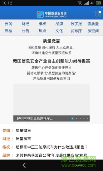 全面整合中国质检报刊社旗下《中国质量报》、《中国国门时报》和《中国质量技术监督》、《中国检验检疫》、《中国质量万里行》、《消费指南》、《产品可靠性报告》的质检新闻。搭建信息互动平台,征集新闻线索、受理网友投诉、解答业务咨询,服务公众信息需求。